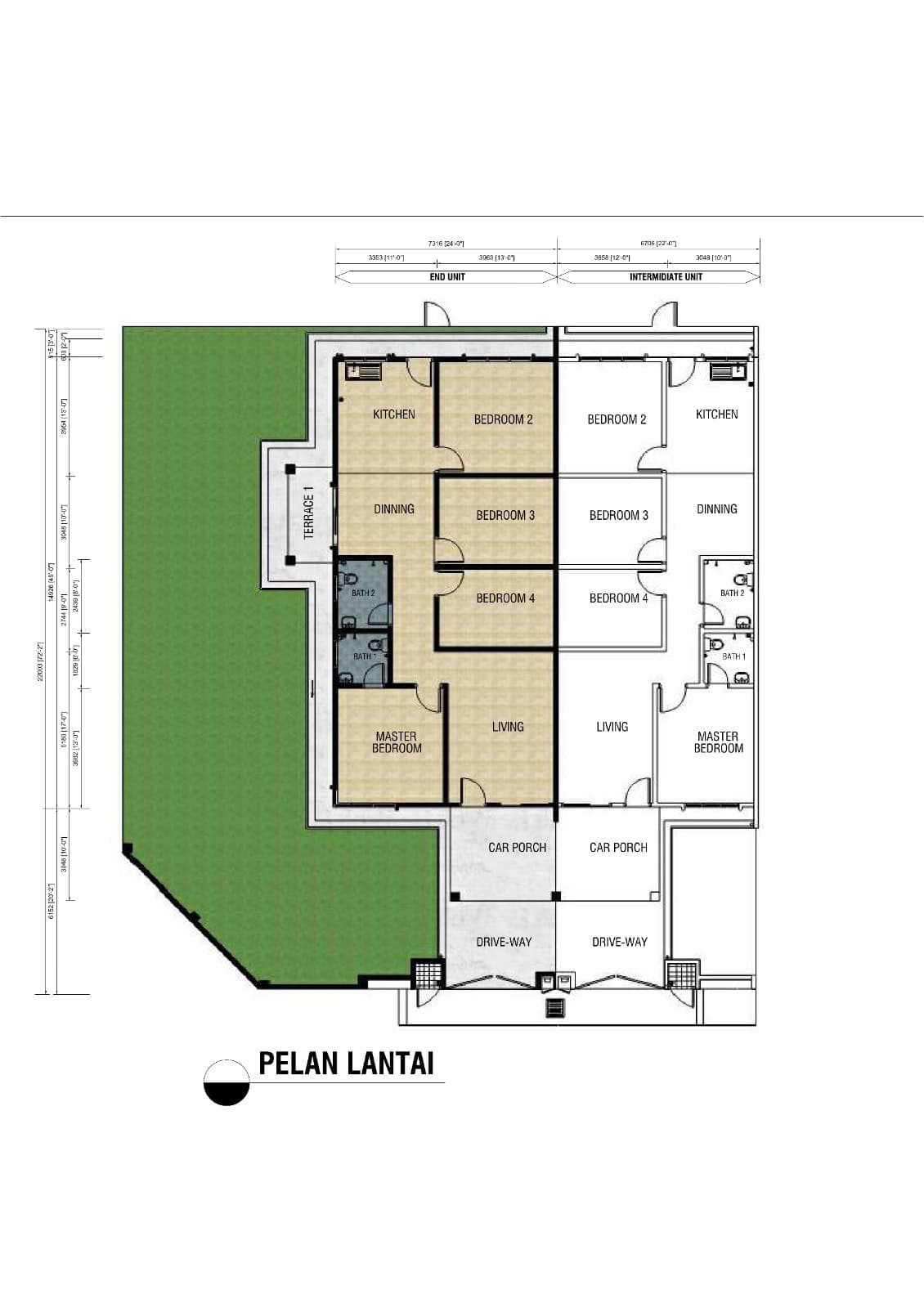 Tanah: 22′ x 72′