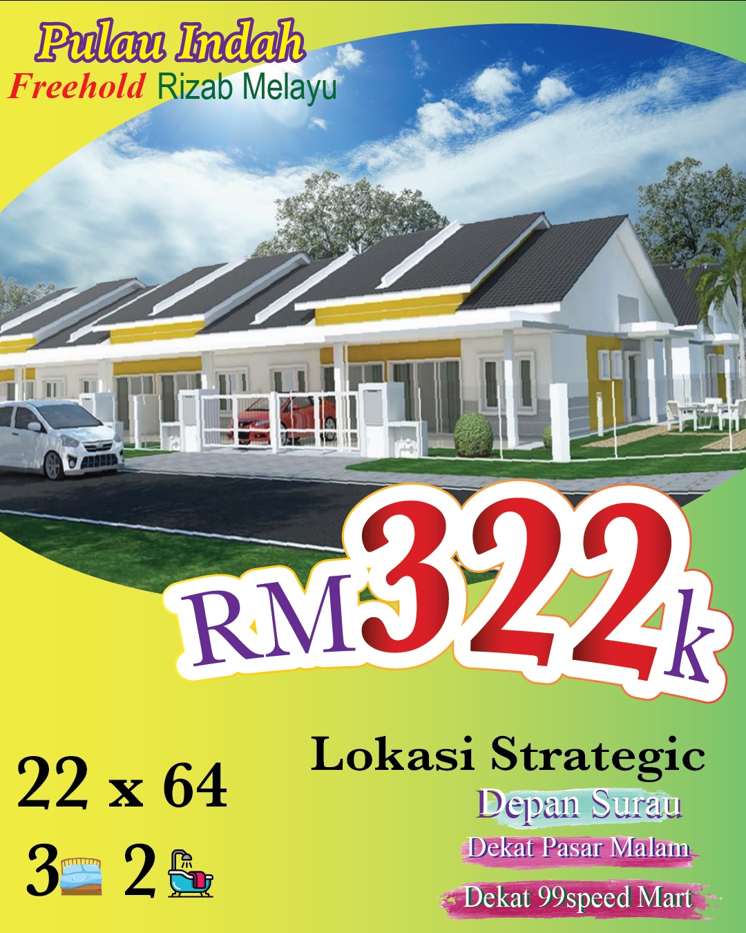 RM1.5k bulanan FREEHOLD LANDED @ Pulau Indah 🔥