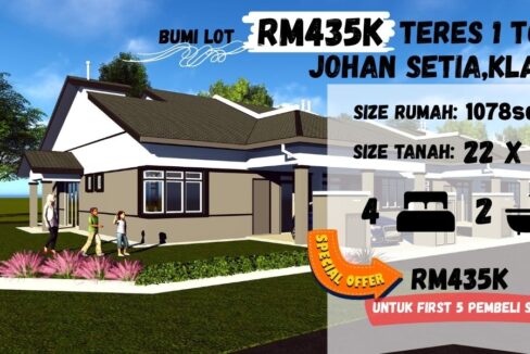 Teres Setingkat saiz TERBESARHarga PROMOSI RM435k hanya untuk first 5 pembeli sahaja!! Info Rumah;-Tanah: 22′ x 72′Rumah: 1078 sqft4Bilik…